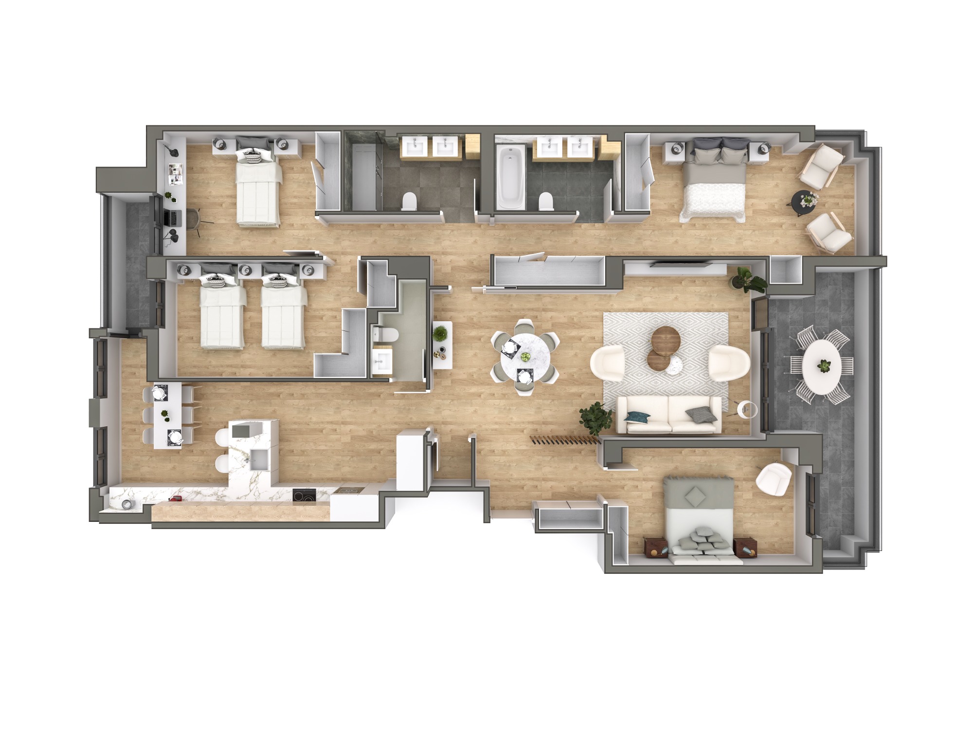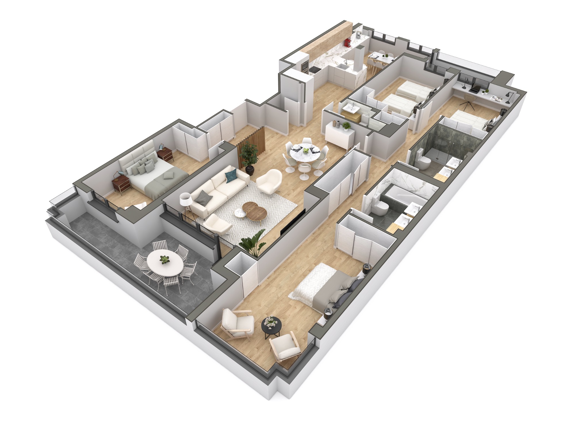Realizo plantas 3d de todo tipo de vivienda con la mayor fidelidad a tu proyecto arquitectónico y para que tu cliente vea esos planos 2d de manera mas secilla y clara.